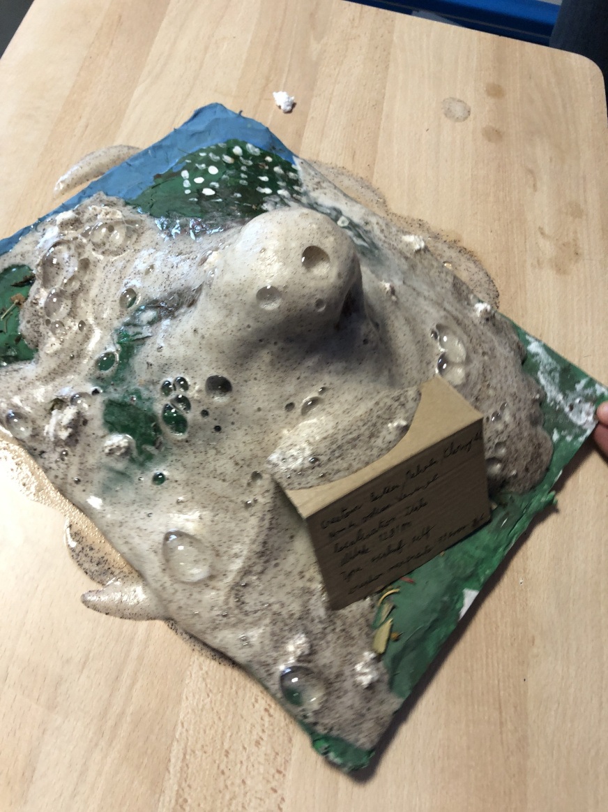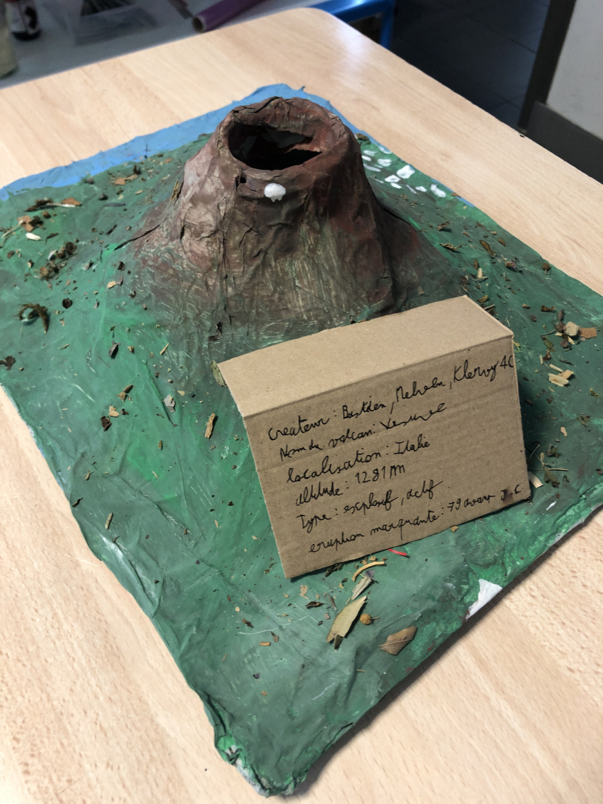 Dans la continuité des cours en SVT avec Mme Le Ray sur les volcans, les élèves de 4C sont passés de la fiction à la réalité ! À l’aide d’objets et matériaux de récupération, ils ont créé une maquette la plus réaliste possible permettant de réaliser une éruption volcanique. Prenez le temps de découvrir les photos. Et surtout n’hésitez pas à aller à la rencontre des volcans au CDI !