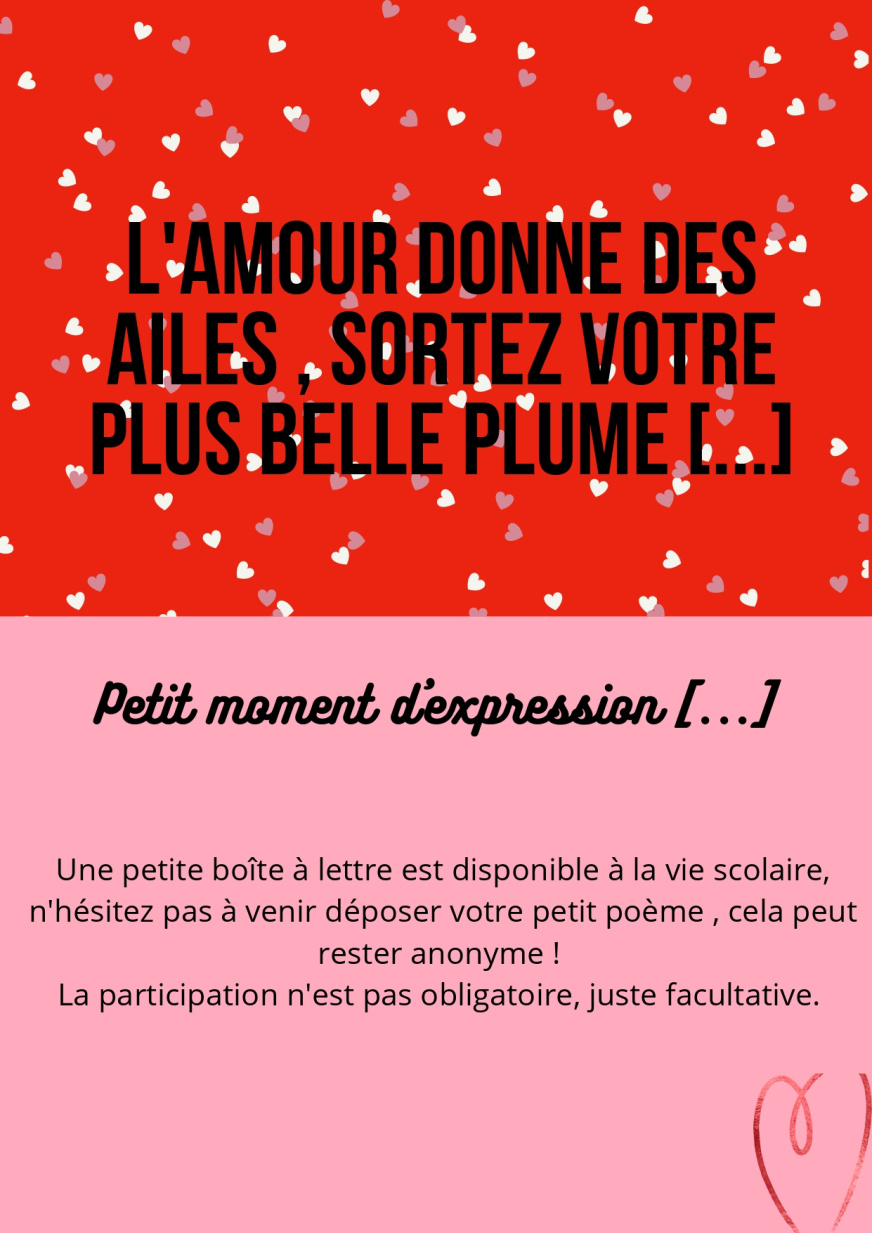 Une petite animation organisée pour la Saint Valentin. A vos stylos !