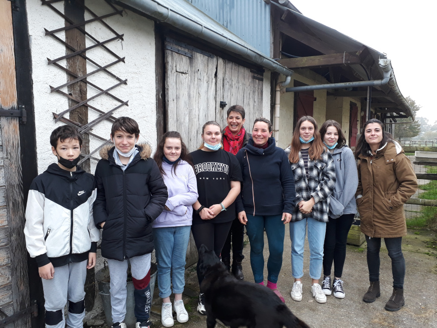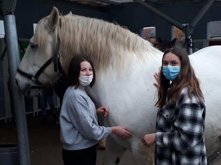 Vendredi 12 novembre, l’association Croq’SEP (Croquer la vie à pleines dents avec la Sclérose en Plaques) est venu avec 3 chevaux au collège rencontrer des élèves dans le cadre du dispositif persévérance. Trois rendez-vous sont prévus entre cette association et ces élèves. L’objectif de ce programme est que les élèves reprennent confiance en eux par le biais du contact avec l’animal.