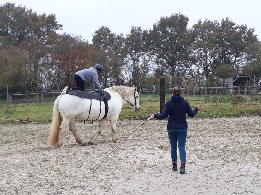 Léa : « J’ai eu peur de monter sur Ursula, elle est très haute et large. J’ai réussi à faire quelques figures et a allé au trot. »