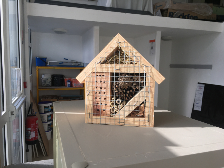 Chaque élève a ainsi construit un abri à insectes auxiliaires du jardinier et participé à la réalisation collective d‘un grand hôtel à insectes.