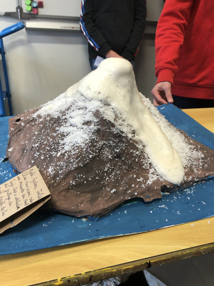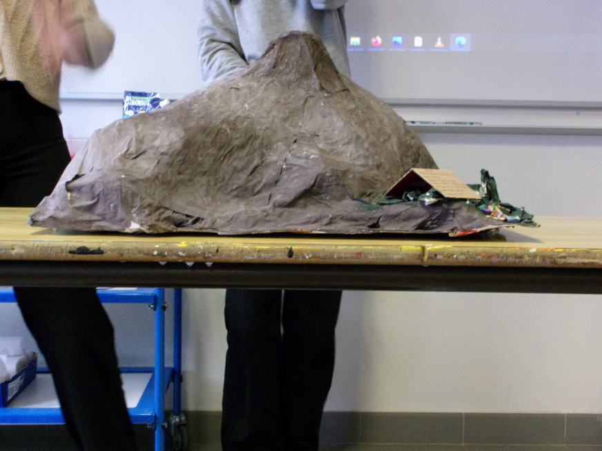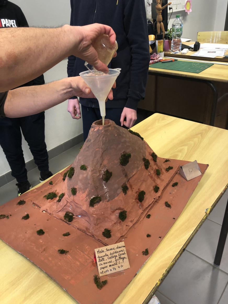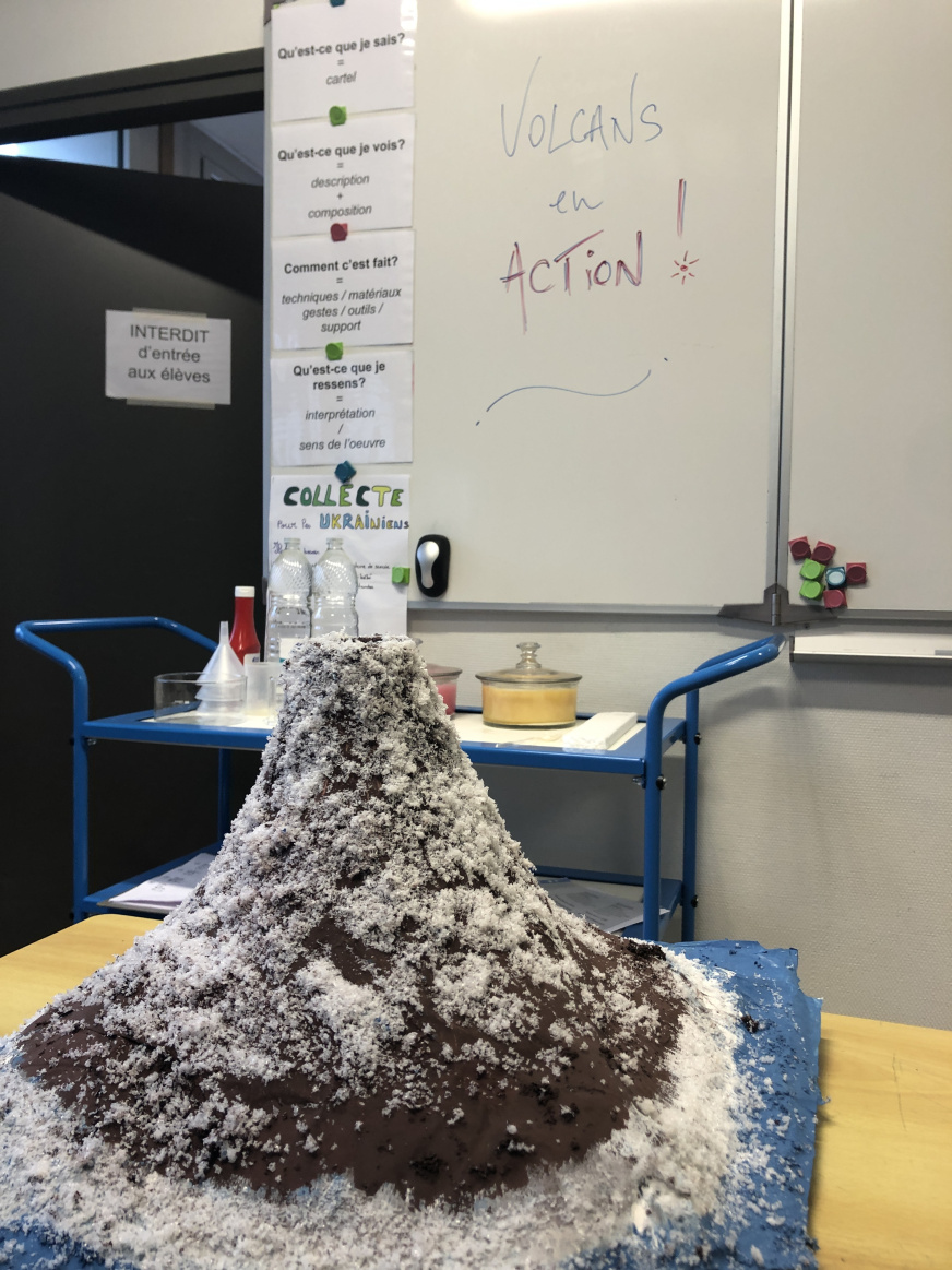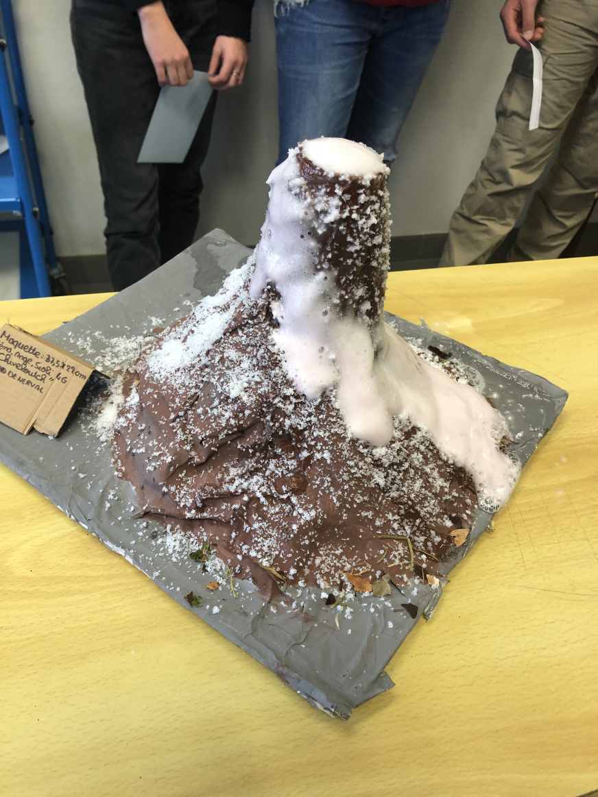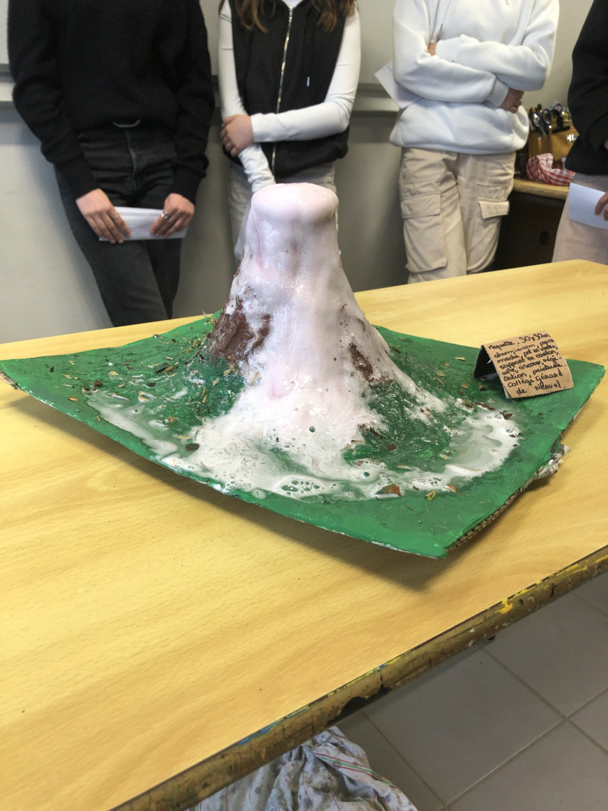 Le CDI accueille les maquettes de volcans. Dans la continuité des cours en SVT avec Mme Le Ray sur les volcans, les élèves de 4D et 4G sont passés de la fiction à la réalité ! À l’aide d’objets et matériaux de récupération, ils ont créé une maquette qui a permis de réaliser une éruption volcanique (bientôt une vidéo sur la mise en action des volcans, un petit peu de patience…). Venez découvrir l’exposition “ VOLCANS – Saison 1” au CDI ! Les élèves de 4D et 4G, Mme Roncevic et Mme Le Ray