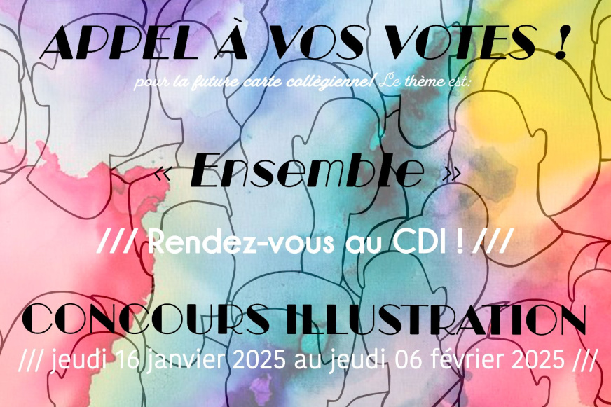 L’appel au concours d’illustration pour la future carte collégienne sur le thème « Ensemble… » est désormais terminé. Il est temps maintenant d’aller voter pour la réalisation de votre choix !