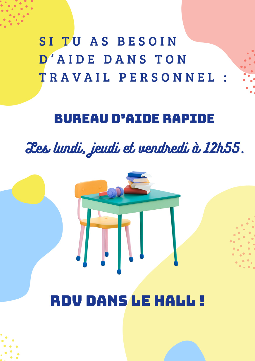 Pour qui ? Un groupe de 10 à 12 élèves volontaires qui ont besoin d’aide pour travailler un point précis ou ont besoin d’être au calme pour réviser